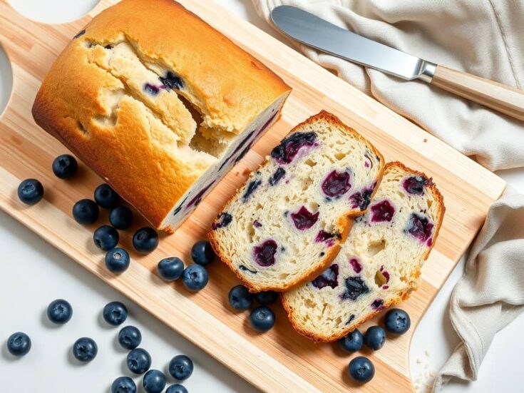 Moist, tender, and bursting with juicy blueberries, this bread tempts you with every soft, flavorful slice. The golden crust gives a slight crisp bite, while the sweet, fruity interior melts in your mouth.